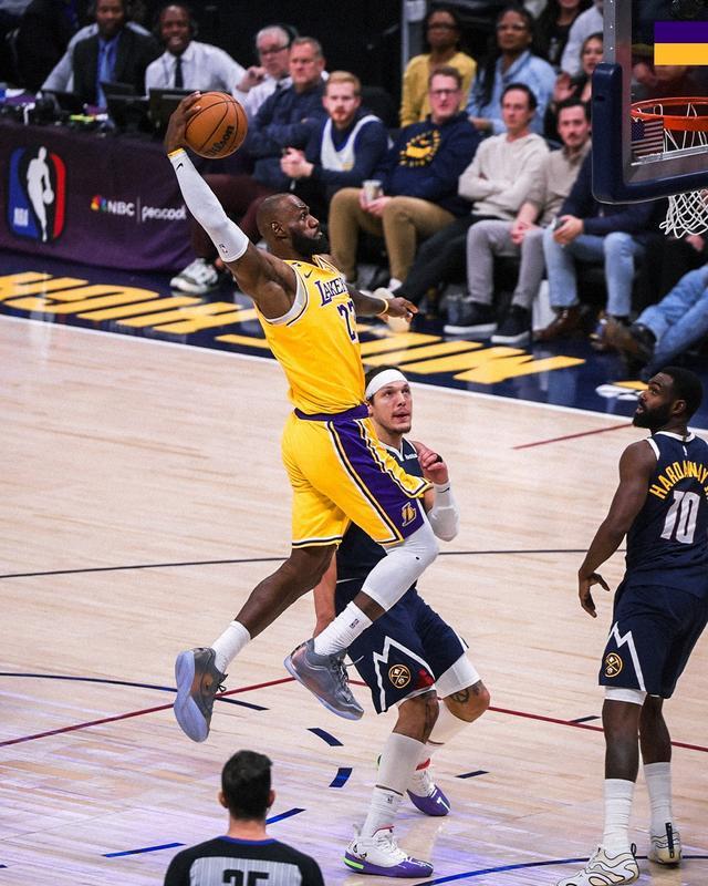 北京时间今日,在NBA常规赛中,洛杉矶湖人队在客场115-107击败了丹佛掘金队,取得了两连胜。本场比赛,湖人队球星勒布朗-詹姆斯出场34分25秒,15投8中得到了19分9篮板8助攻,三分球1中1,罚球6中2,出现了6次失误和2次犯规,正负值为全队第二高的+13。在第三节,詹姆斯6投4中独得9分4板2助帮助湖人一举追回了12分,仅落后2分进入第四节,也间接帮...